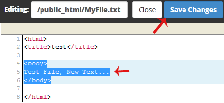 6.修改文件内容后,点击 ​​"保存更改"​​(Save Changes)。