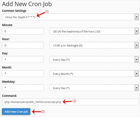 3.在 "添加新 Cron 任务"(Add New Cron Job)下,点击 "常用设置"(Common Settings)下拉菜单,选择适合的选项(例如 "每天一次" 或其他合适的频率)。