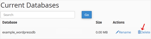 3. 在 "当前数据库" 列表中,找到您要删除的数据库并点击 "删除"