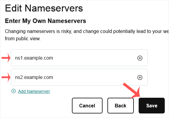 6.在输入框中填写您的域名服务器地址,点击 "保存"