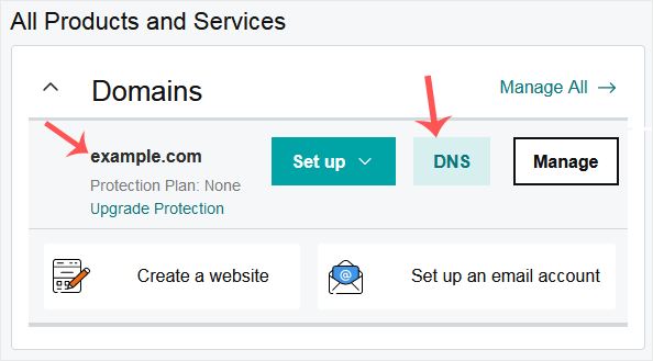 3.登录成功后,在 "域名" 部分找到目标域名,点击右侧的 "DNS"