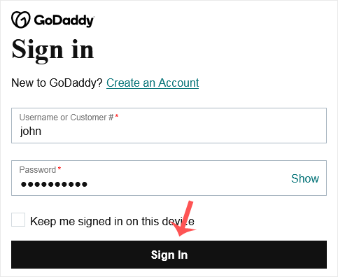 1. 访问 GoDaddy.com,点击 "登录" → 在 "注册用户" 下再次点击 "登录",页面将跳转至登录表单