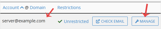 4. 在对应邮箱地址右侧点击"管理"(如server@example.com)