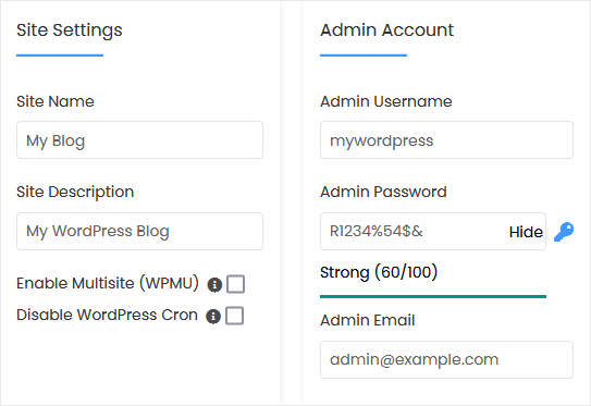 - 管理员用户名:新建WordPress用户名(安全起见请勿使用administrator或admin)
