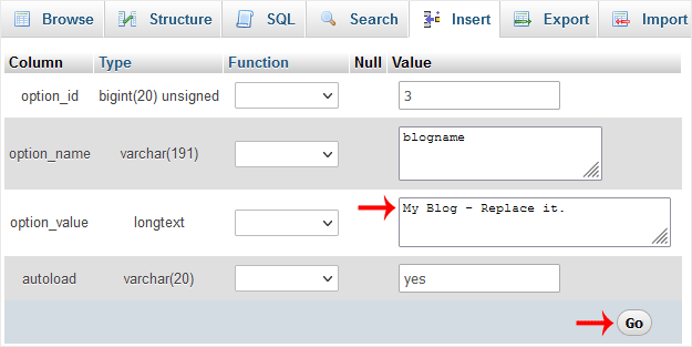 4.选择您要编辑的对应表格。如果您想更改 WordPress 的博客名称,请选择 "wp_options" 表。