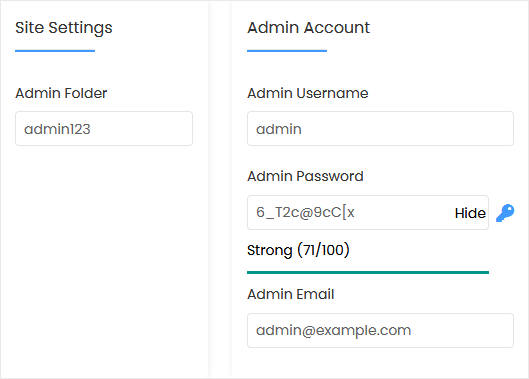 - 管理员目录:输入您的管理员目录名称(如"admin123")