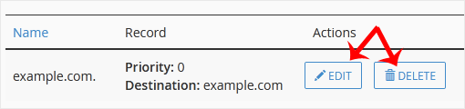 您可以通过 cPanel 的 DNS 区域编辑器 编辑或删除 CNAME 记录,用于管理、修改或移除 DNS 记录。