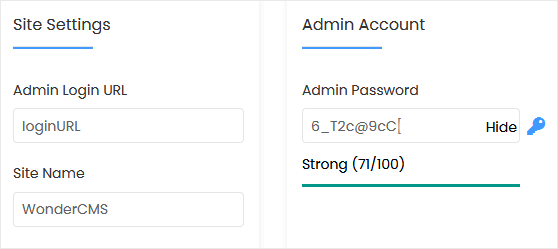 - 网站名称:输入您的网站名称(如"WonderCMS")